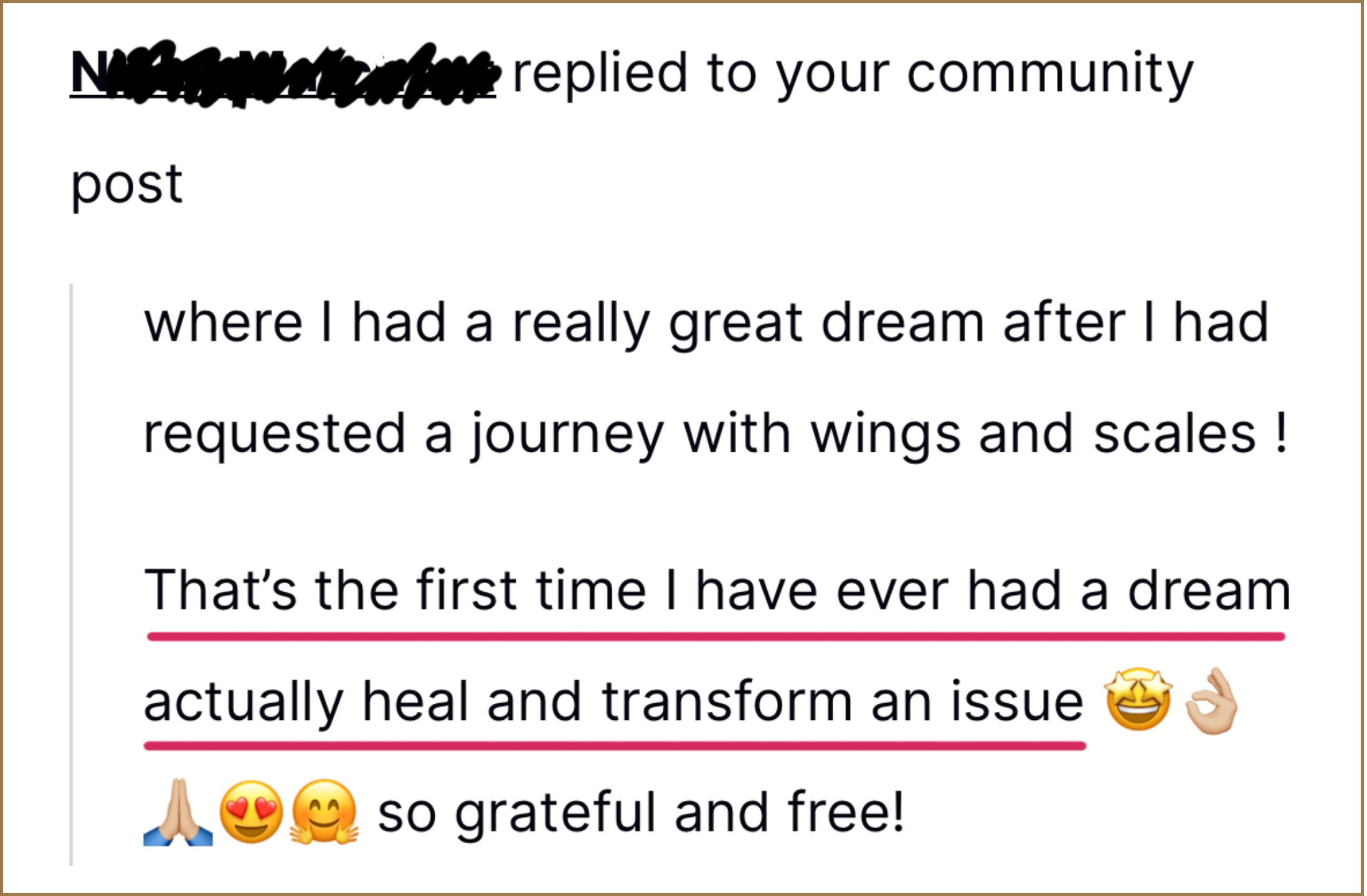 🐍 The experience of being mirrored in a small hive, so your dream language gets clearer through relationship, not analysis.