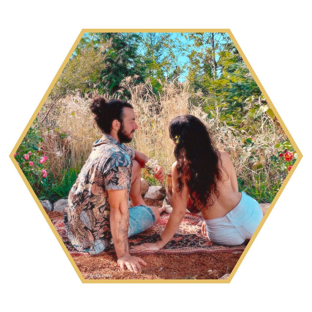 At Sacred Symmetry, we believe that relationships are the ultimate mirrors, reflecting back the depths of our souls and the nuances of our journeys. We are Stella and Justin, partners in life and co-creators of this sacred space. Our 11-year relationship has been a profound teacher, guiding us through the highs and lows, the light and the shadows.